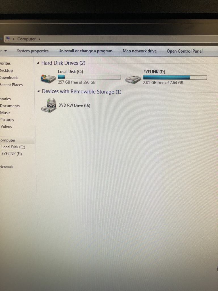 A good pratice is to open the Windows 7 interface to ensure there is enough space on the pc to store the files obtained by the eye tracker (see FAQ).