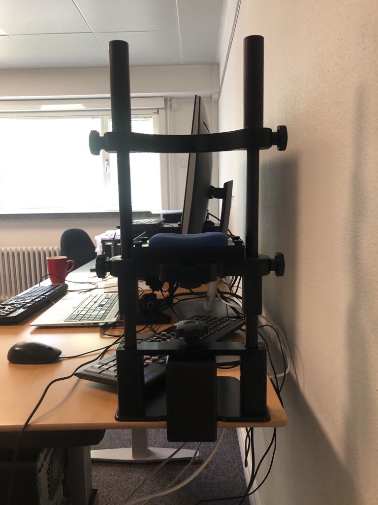 Having ensured enough space, restart the eye tracker pc and select the Eyelink 1000 from the start-up menu. Here you’ll find the interface of the eye tracker on the eye tracker monitor. Generally interaction with the eye tracker happens until this point on the eye tracker pc and then afterwards communication happens through the stimulus pc (if conducting experiments through psychopy on the stimulus pc).